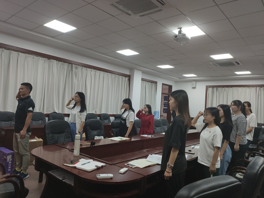 本次会议主要有重温入党誓词、主题教育、近期工作安排和党支部检视问题。首先,由黄士库老师领誓,带领党员同志重温入党誓词,然后又对“不忘初心,牢记使命”精神做了深刻讲解,让预备党员有了更深刻的认识。接下来,黄士库老师对近期党支部工作做进一步的安排和分工,提出党员同志要积极参与志愿活动,落实三会一课和主题党日制度。此外,并以“分工不分家”的理念合理组建党支部活动小组,锻炼学生党员的综合素质。为更好地了解党员同志对党支部目前发展状况的看法,会议就党支部现状,检视问题,通过讨论广泛地收集了党员同志们的意见和建议,其中,盘雪萍同志提到目前党支部工作量较大、人手不足的问题,希望可以进一步改善。