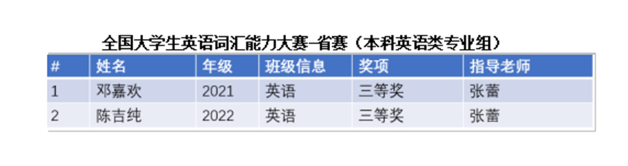 4月至5月底,第四届“外教社·词达人杯”全国大学生英语词汇能力大赛顺利举行。万象城学生在本次省赛中取得突破,本科英语专业组邓嘉欣、陈吉纯获得省赛三等奖。