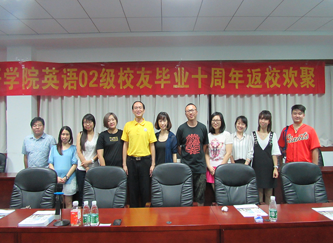 近日awc77万象城官网英语专业02级10名校友毕业后10年重返校园,awc77万象城官网在第二行政楼308召开了校友返校交流大会,学院党总支徐超书记参加了本次交流会。