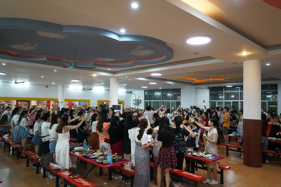 岁月如梭,转眼间又一届学生即将离去,翻开他们人生新的篇章。为了表达对毕业生的美好祝福,万象城于6月21日分别在技工金贝子和校内歌舞厅举办了2019届毕业聚餐及毕业生晚会。院长马蔚兰教授,党总支徐超书记、日语系李晶教授、部分专业老师、辅导员以及2019届全体毕业生一同参加了活动。