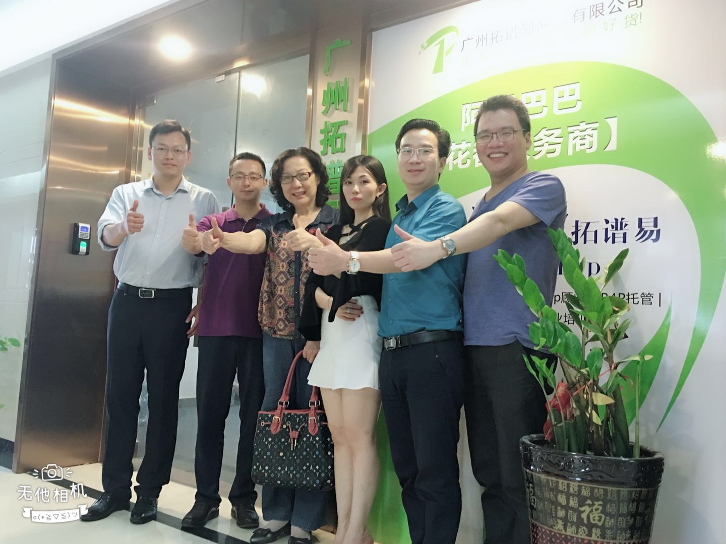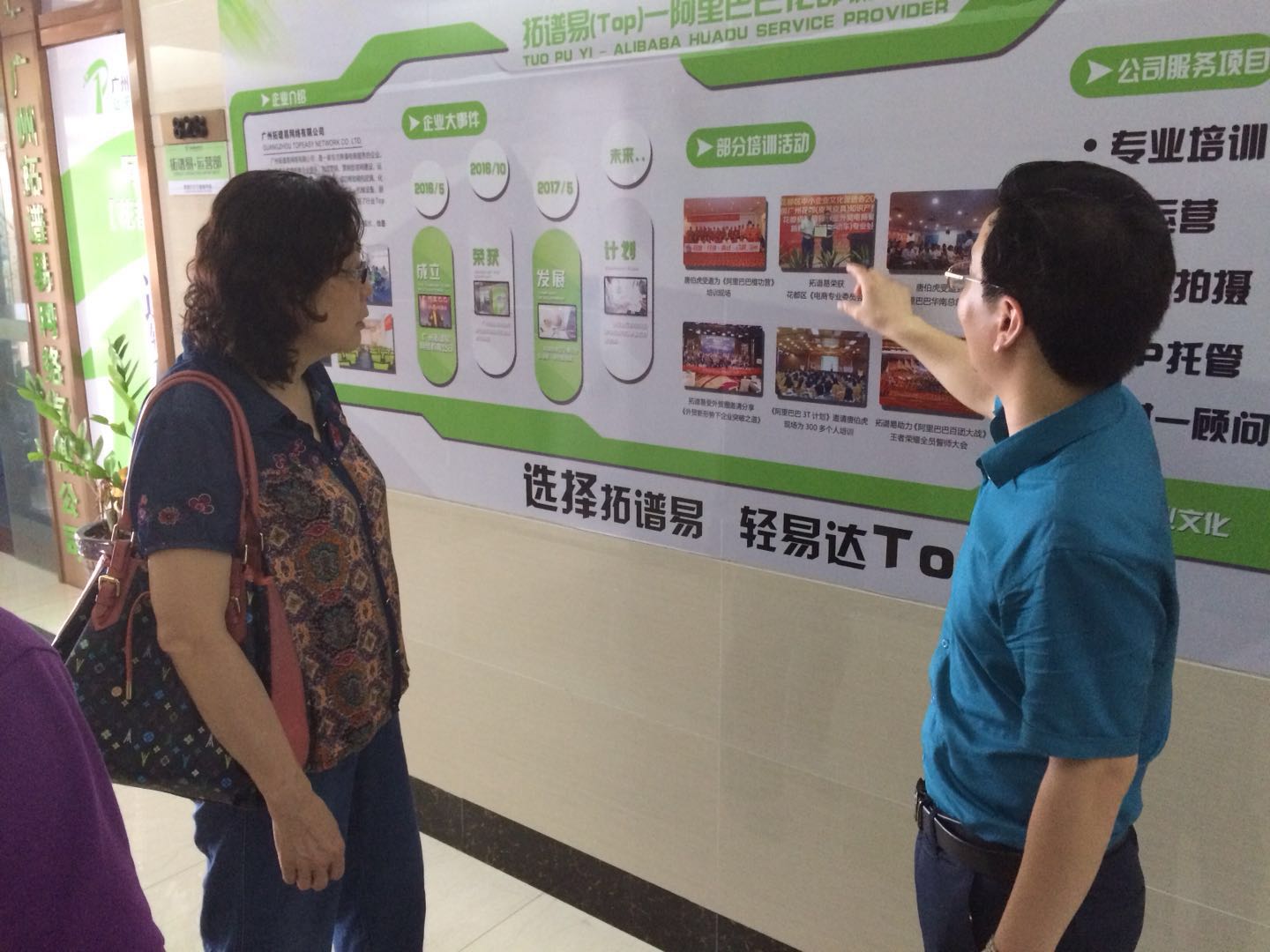 邹云虎董事长首先带领马院长一行参观了广州拓谱易网络有限公司的代运营公司,过程中,他向马院长一行介绍了公司的发展历程、成功案例及合作单位情况。随后,马院一行与邹董事长及广州九鸣教育科技有限公司总监洪斌、经理马倩倩、阿里巴巴(中国)网络技术有限公司国际事业部资深客户经理苏明生在会议室针对校企合作跨境电商人才培养进行了深入地四方会谈。