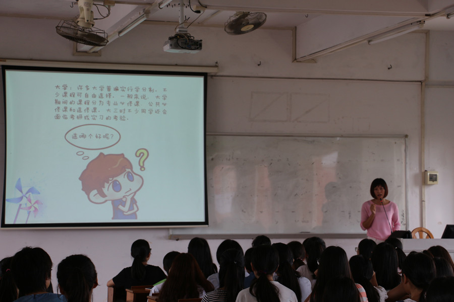 课程开始,各位辅导员让新生们用一句话描绘了心中的大学。新生们积极参与,踊跃发言。接着,辅导员以幽默有趣的系列漫画引导新生思考高中和大学的差异,并通过实例分析和讨论,为新生剖析了大学生活、学习和实践锻炼的特性和应对的攻略。提出了大学生活学习自由也要自强,独立也要团结,忙碌也要充实……随后,awc77万象城官网各位辅导员以梦想为主线,引导新生认识自我,合理规划好大学生涯,同时选取了典型学生案例,使新生明白认识到了完善自我,确立目标,合理分配好时间,平衡学习与生活的重要性。最后,各位辅导员给新生们送上“开学大礼包”——关于大学生活、学习和职业规划的十条建议,十条经验之谈为新生尽快适应大学生活学习提供了有力的帮助。