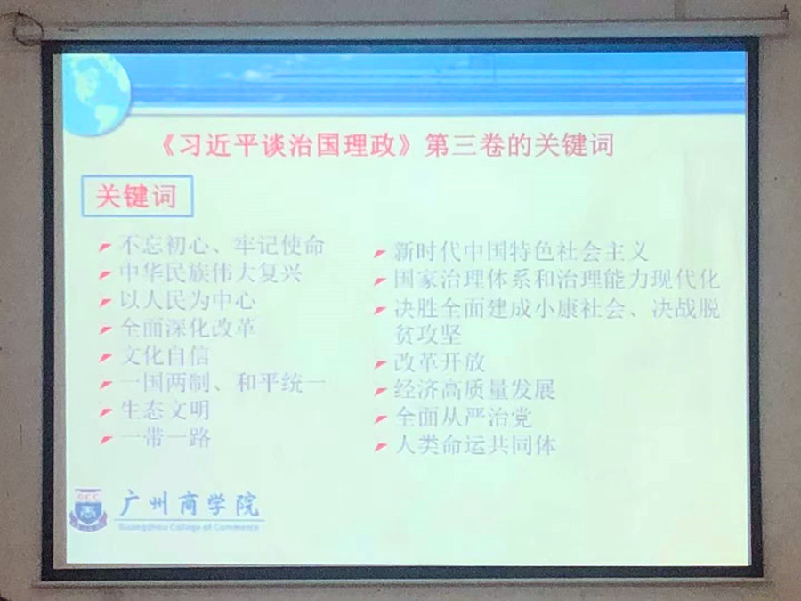 王立云特别强调了《习近平谈治国理政》第三卷的实践意义,它是实现“两个一百年”奋斗目标、进而实现中华民族伟大复兴的实践指南;新时代全面从严治党的实践指南;构建人类命运共同体的实践指南;广东实现“四个走在全国前例”、当好“两个重要窗口”的实践指南。因此,广大教育工作者要学深悟透、融会贯通理论精神,通过“课程思政”等方式将其运用到培养德智体美劳全面发展的社会主义建设者与接班人的教学实践中。