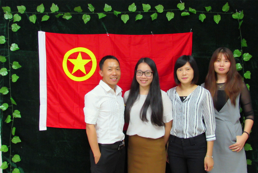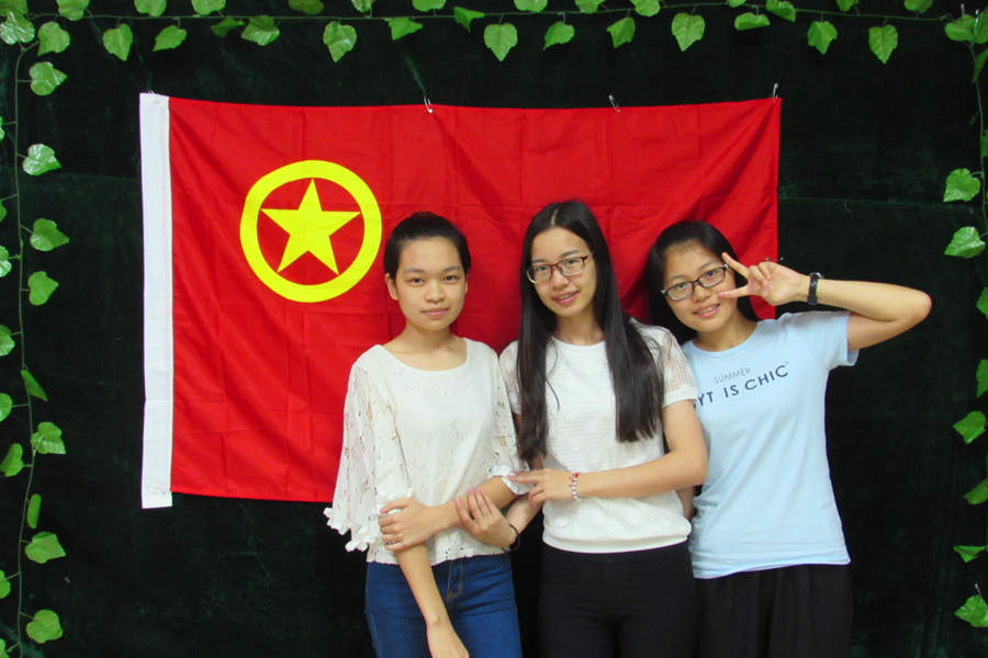 在活动号召发出之后,万象城团员青年积极响应,分别来到背景墙与团旗合影。团员们在火红的团旗下,留下了一张张灿烂的笑脸,展示出外院青年的朝气蓬勃和青春向上的精神风貌,他们也将自己的青春誓言留在了这一张合影上,看似一次简单的活动,却在不经意之间流露出了他们对祖国的热爱。