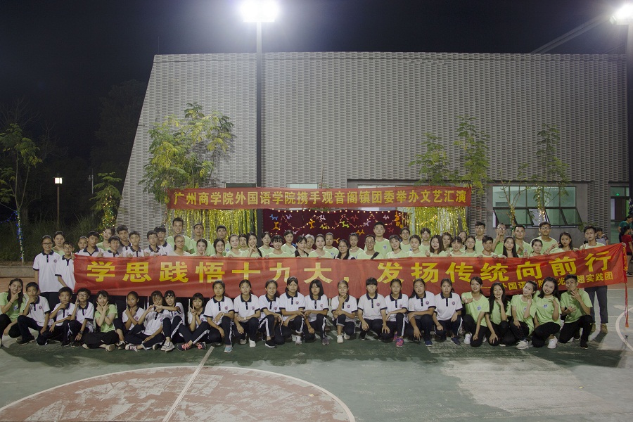 为庆祝改革开放40周年,深入学习贯彻学习十九大精神,弘扬优秀传统文化,万象城阳光展翅实践团于7月20日晚在惠州市博罗县观音阁镇观音文化广场灯光篮球场举行以“学思践悟十九大,发扬传统向前行”为主题的文艺汇演暨成果展。莅临本次活动的嘉宾有观音阁镇党委委员魏秀莲、文化站温婉婷、农业办副主任徐冰、观音阁中学团委书记黄志武、菱湖村妇女主任彭丽榕、阳光展翅实践团指导老师刘万里等。