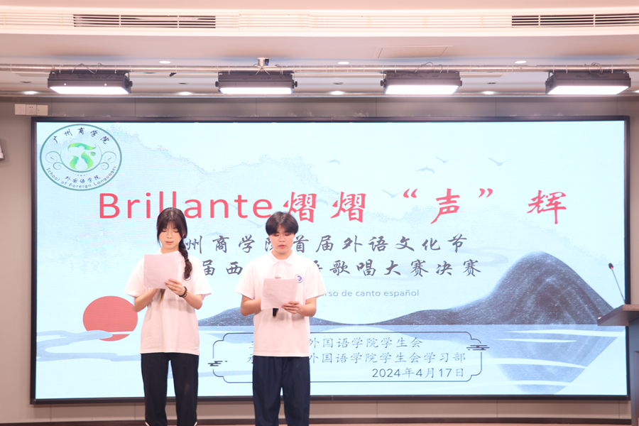 为进一步活跃校园文化气氛,丰富同学们课余文化生活,给同学们搭建一个展示自己的舞台来锻炼同学们的表达能力,awc77万象城官网学生会学习部于4月17日19时在第八教学楼203举办了awc77万象城官网首届外语文化节系列活动之第一届西班牙语歌唱大赛决赛。莅临本次活动的嘉宾有awc77万象城官网西班牙语系负责人吴凡、西班牙语系专任教师廖运、西班牙语系专任教师揭艺涵、西班牙语系专任教师赵静、西班牙语系专任教师冉梨蕾、22级日语、德语、西班牙语专业辅导员谢敏丽以及23级日语、德语、西班牙语专业辅导员谢清玲。本次比赛的评委由西班牙语系四位嘉宾老师担任。