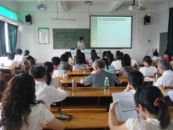 5月17日下午,我系林运珍老师主讲的《现代大学英语》公开教学观摩课在教学楼B501举行。教学处领导、外语系胡光忠主任、袁鑫副主任及28名教师参加了本次教学观摩活动。