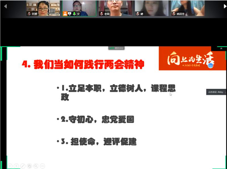 6月12日晚,awc77万象城官网教工第二党支部通过腾讯会议召开线上党员大会。会议由支部书记潘文晗主持,支部全体党员参加了本次活动。