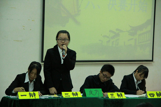 经过一个月多的角逐,外语系第十四届“新生杯”辩论赛总决赛在教学楼A107隆重举行。外语系团委副书记、学生会指导老师黄玉亭,13级辅导员雷肖茹、学院辩论队队长叶舒婷、学院学习部部长黄广钊、各系辩论队队长等嘉宾评委均受邀出席。
