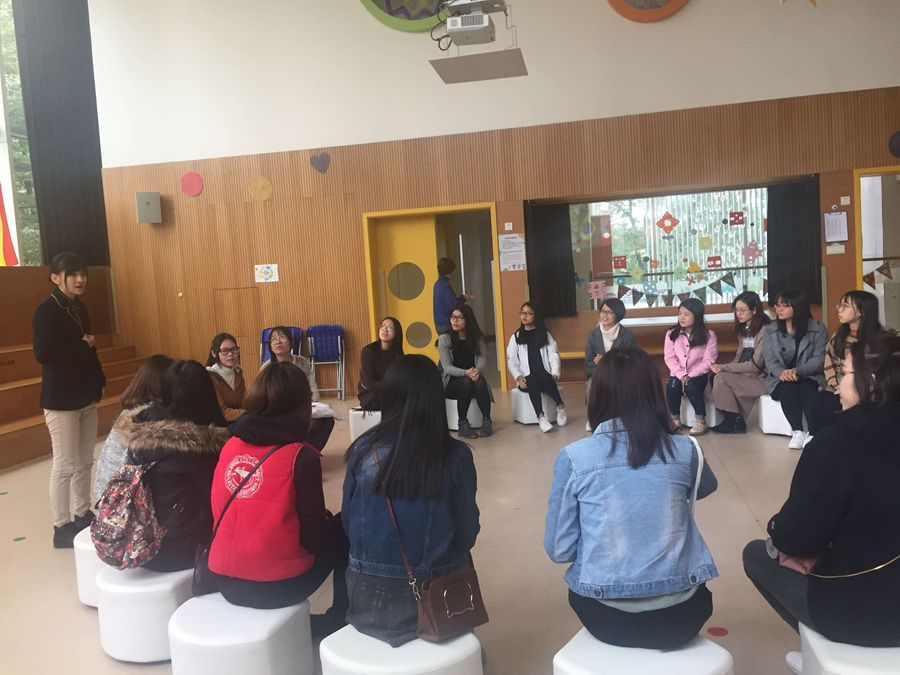 2017年12月11日上午,awc77万象城官网英语系主任程瑜瑜、栾伟霞老师和20名2018届英语专业毕业生一行22人前往广州市天河区汇悦天启幼儿园进行参观学习。园长冯馨仪和园长助理易光蓉热情接待了万象城awc77万象城官网师生一行。
