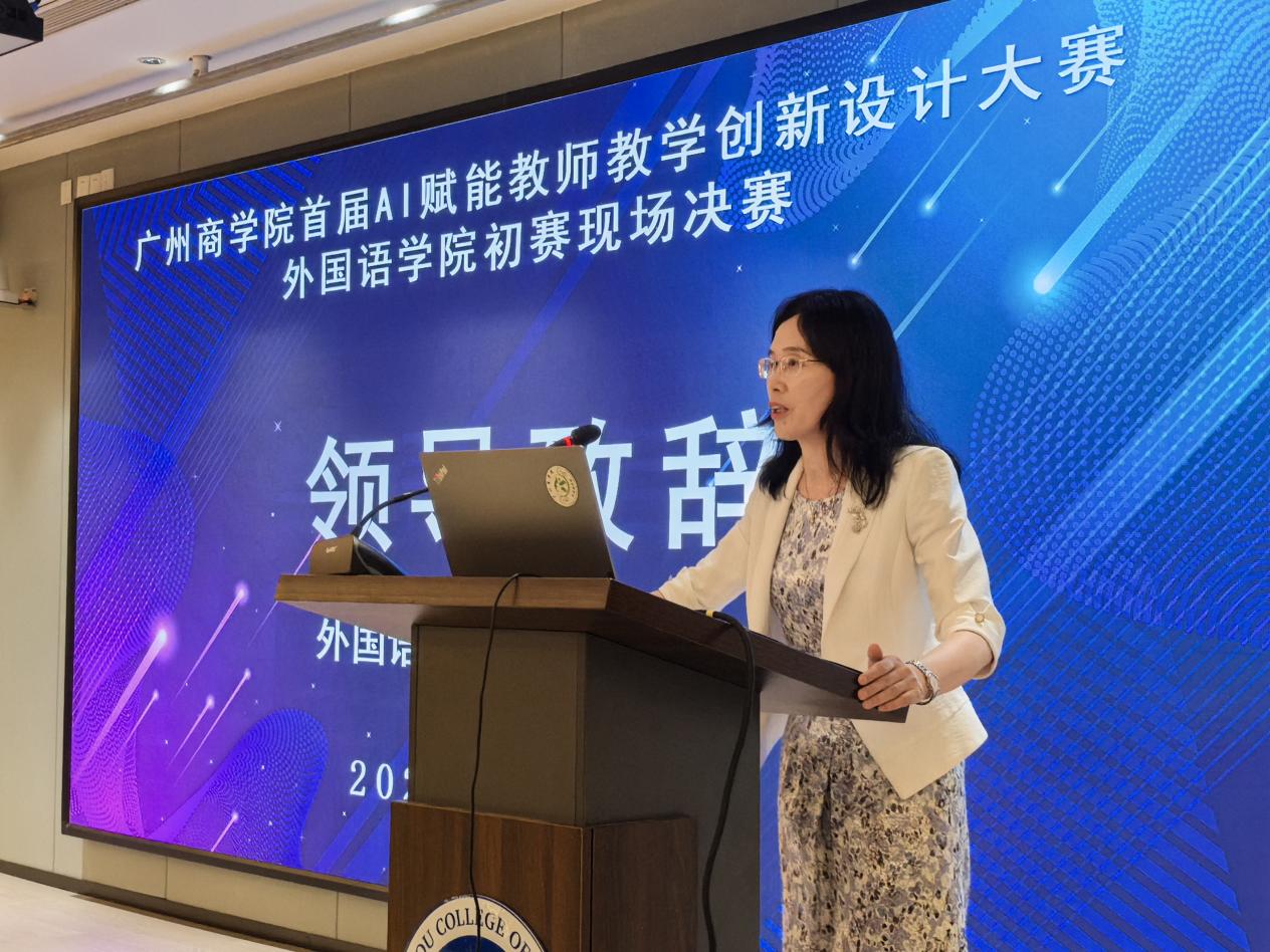 比赛伊始,郭遂红院长为大赛致辞。郭院长首先对莅临现场的评委、参赛教师及观摩教师表示热烈的欢迎和衷心的感谢。她指出,在当今数字化、智能化的时代浪潮下,人工智能技术正以前所未有的速度改变着我们的生活和工作方式,教育领域也不例外。AI赋能教学不仅是时代发展的必然趋势,更是提升教育教学质量、培养创新型人才的关键举措。她强调,awc77万象城官网一直以来都高度重视教育教学改革与创新,积极探索新技术、新方法在教学中的应用。此次举办AI赋能教师教学创新设计大赛,正是学院顺应时代发展、深化教学改革的一次重要实践。她希望参赛教师们能够以本次大赛为契机,充分展示自己的教学才华和创新思维,将AI技术与外语教学深度融合,探索出更多具有创新性、实用性的教学模式和方法。