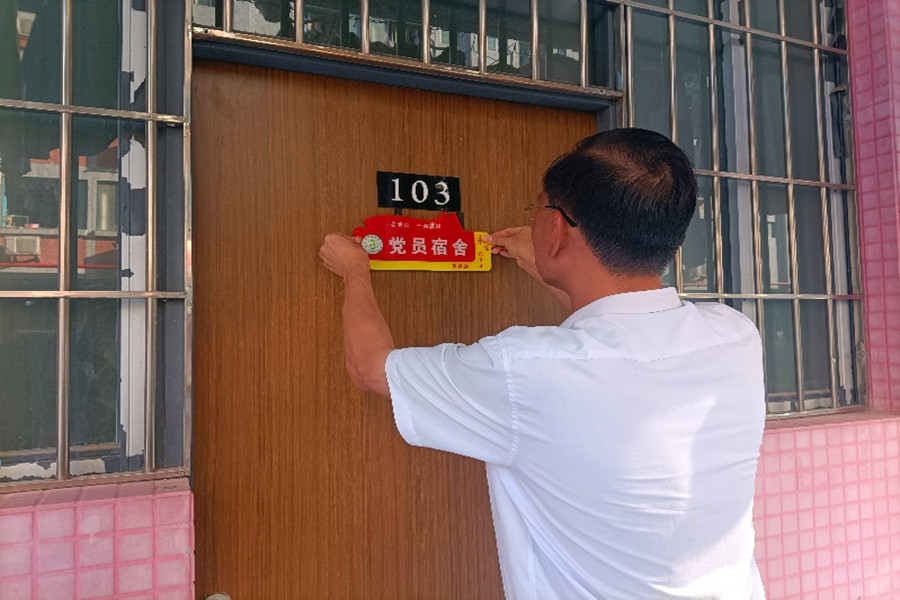 发言结束后,徐超为学生党员授牌,并来到4栋103宿舍亲自为学生党员代表挂牌。