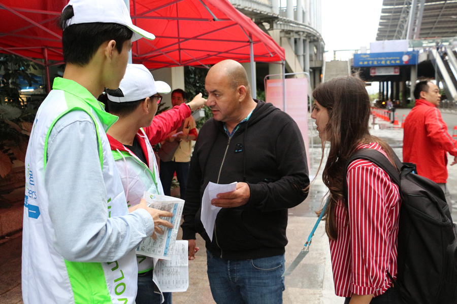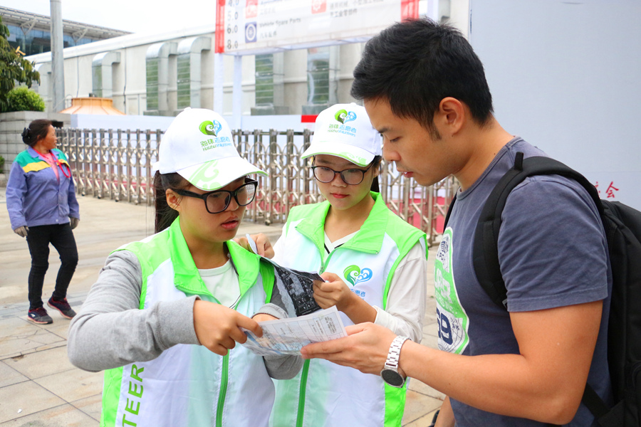此次志愿服务活动主要是为境内外客商指引通往各场馆的道路,指引办证地点,指引乘交通工具的地点与告知其注意事项等。志愿者们热情满满,他们用自己的微笑、用自己的热情,耐心地帮助着来自五湖四海的客商朋友们,还充分地运用了自己所学过的知识,准确有效地为他们提供服务。 即使风雨交加,他们也仍未停下服务的脚步,只为展示广商志愿者之风采,成为一道亮丽的风景线。