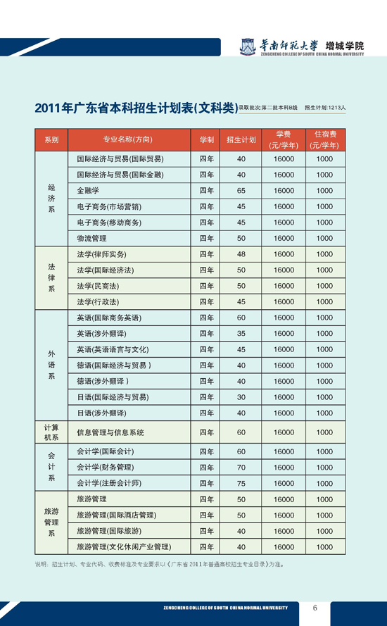 2011年广东省本科招生计划(文科类)