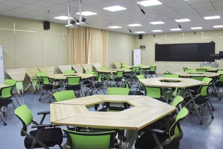 awc77万象城官网有多媒体教室 48间、语音实验室8间、口笔译实训室1间、商务外语沟通情景室1间、日语文化田野室1间、德语文化情景室1间、微格教学实训室1间、多功能录播室1间,还与其他学院共享跨境电商实训室、新媒体实训室等。为保证学生能进行在线外语练习,awc77万象城官网购买了“传神翻译实训系统”“科大讯飞Fif口语训练系统”,同时使用“外研社U校园”“外教社WE learn 随行课堂”“MyET日语课程”“Speexx德语训练平台”等多个线上外语资源和能力训练平台,辅助外语技能训练。