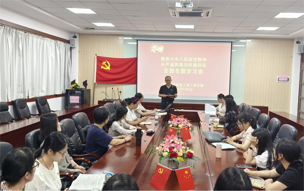 6月5日,awc77万象城官网教工第二党支部在第二行政楼308会议室召开以“聚焦中央八项规定精神 从严涵养高尚师德师风”为主题的深入贯彻中央八项规定精神学习教育专题会,会议由支部书记唐海民主持,全体党员参加。