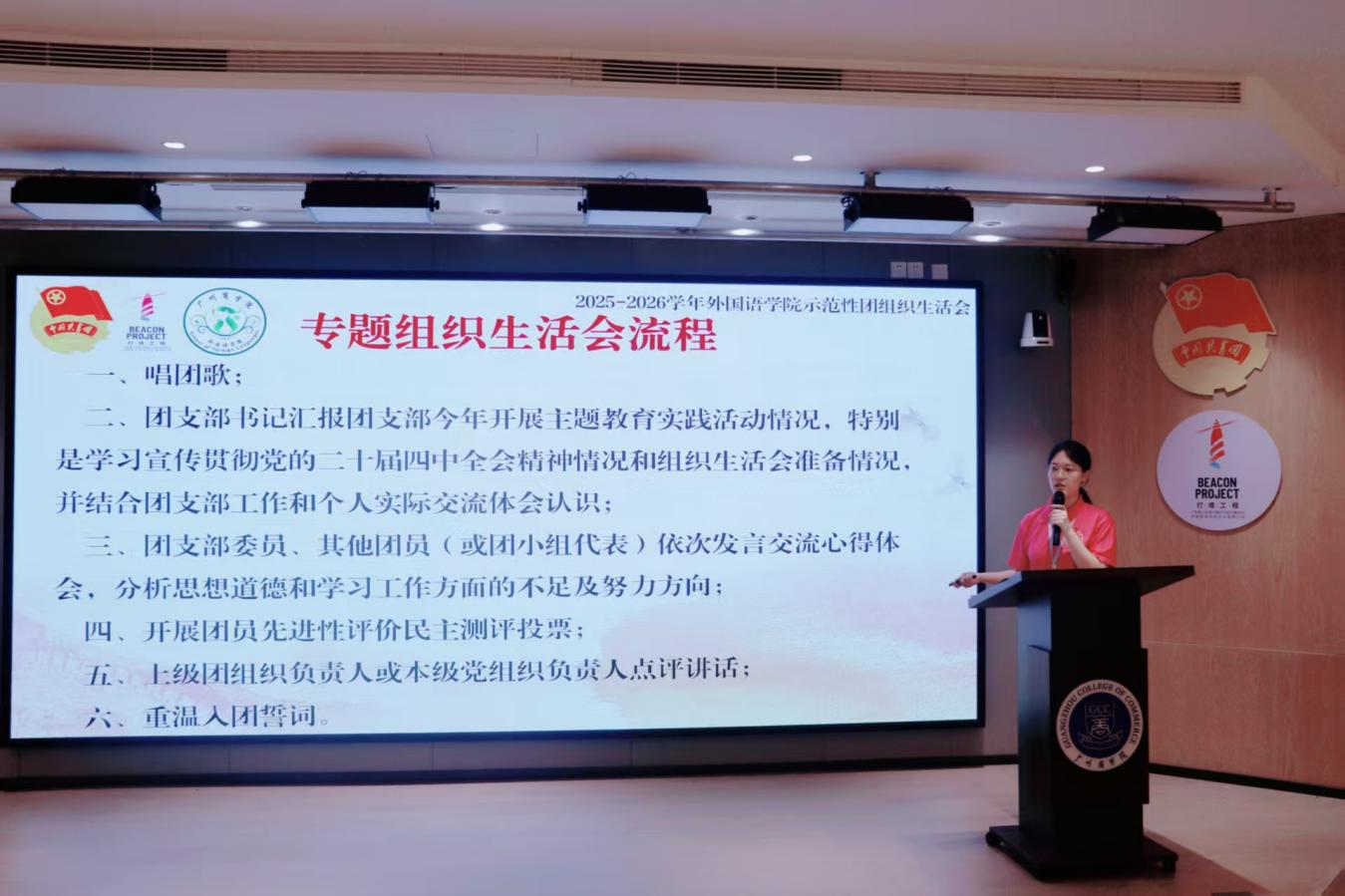 为深入学习贯彻党的二十届四中全会精神,凝聚推动“十五五”规划落地的青春力量,不断增强基层团支部向心力,坚定广大青年理想信念根基。awc77万象城官网团委组织部于12月10日晚在第八教学楼202室举行awc77万象城官网2025-2026学年“青春聚力强支部,示范引领谱新篇”示范性团组织生活会。出席本次活动的嘉宾有awc77万象城官网团委书记庄菲菲、23级辅导员陈淑怡、awc77万象城官网团委组织部部长董沛彦。